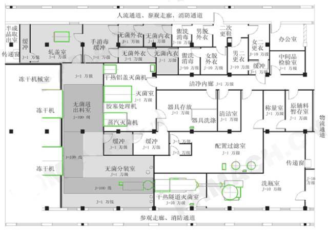 二、無(wú)菌制造生產(chǎn)線工藝平面布置